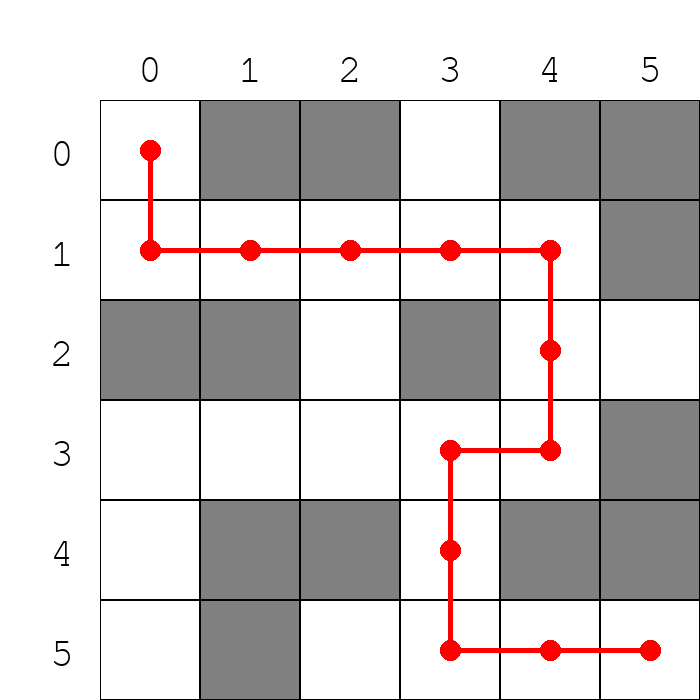 red_path = [(0,0), (1,0), (1,1), (1,2), (1,3), (1,4), (2,4), (3,4), (3,3), (4,3), (5,3), (5,4), (5,5)]