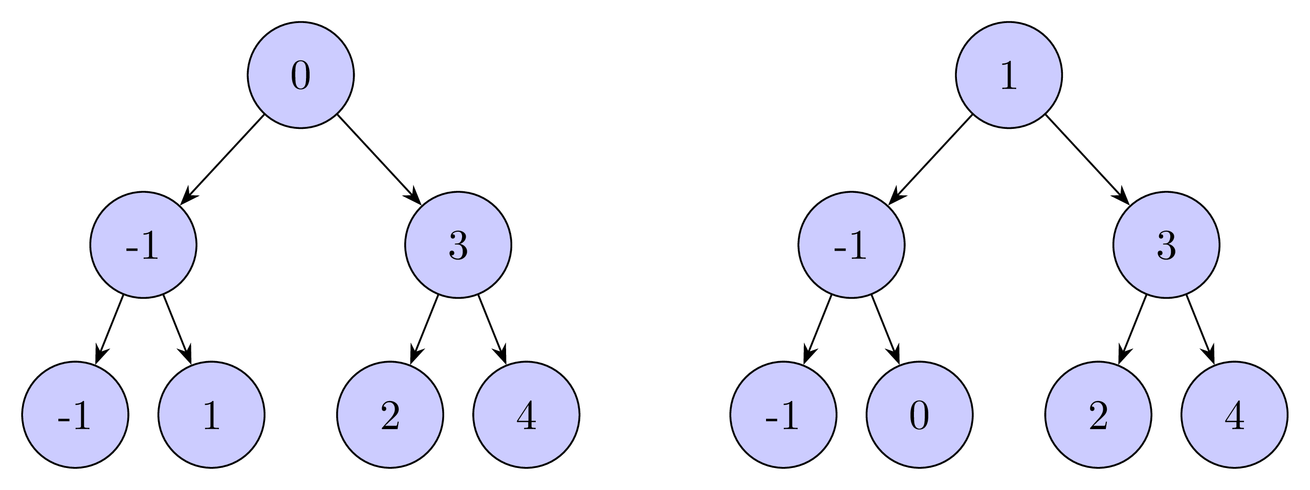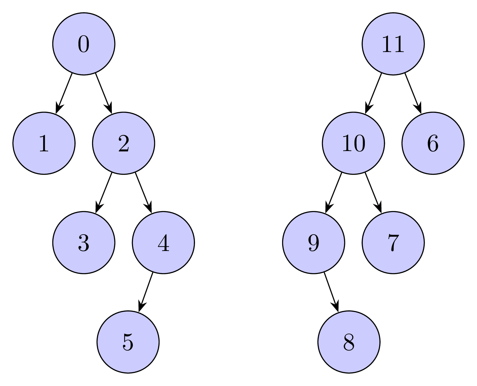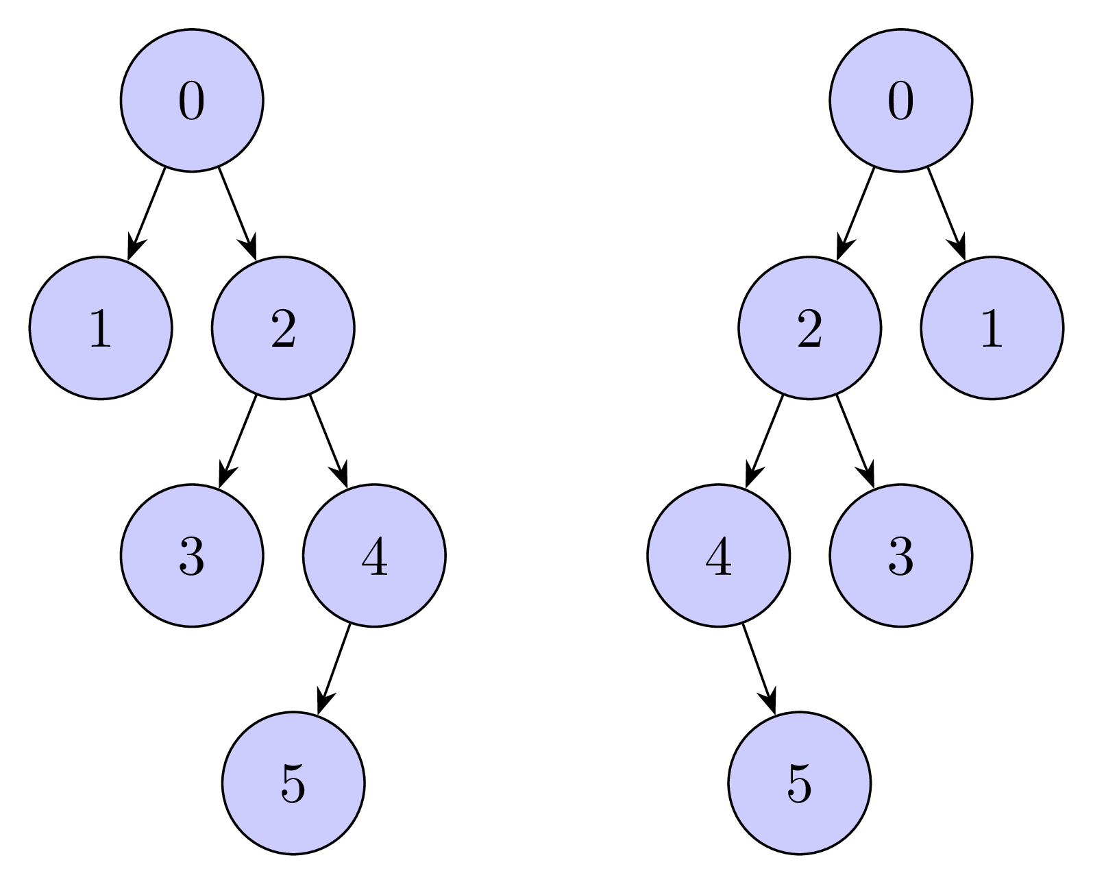 T1 = Node(0, Node(1, Node(2), Node(3)), Node(4, Node(5)))while the pair of binary trees