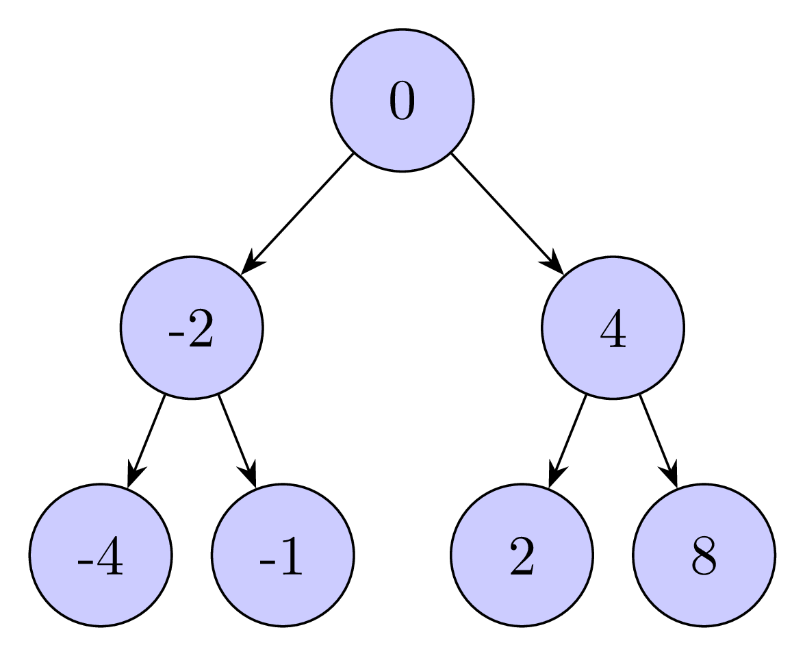 min_diff(root)that takes a binary search tree and computes the smallest absolute value of the difference between the values in different nodes. The complexity should be \(\mathrm{O}(n)\).For example, the following BST has